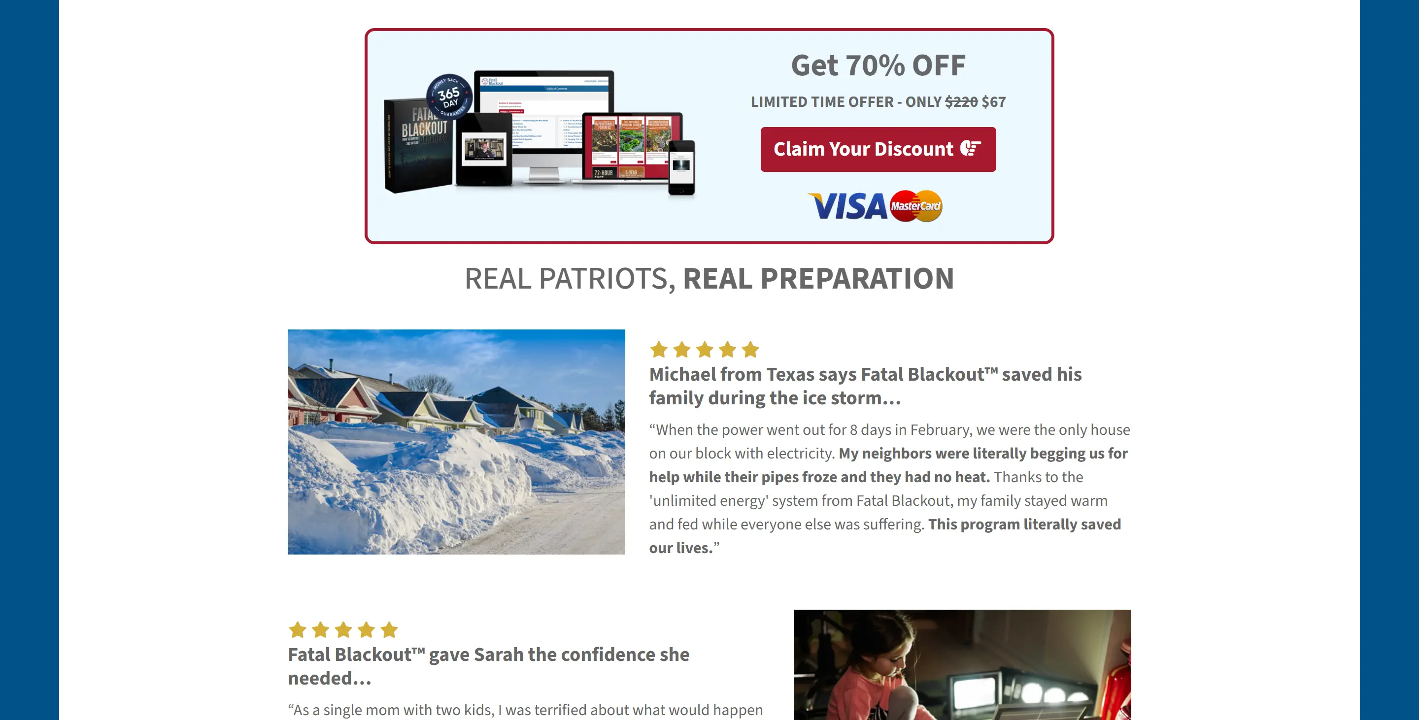 Fatal Blackout™ is marketed as a preparedness program focused on extended power-outage scenarios. This page is a short overview and a simple way to reach the official flow.